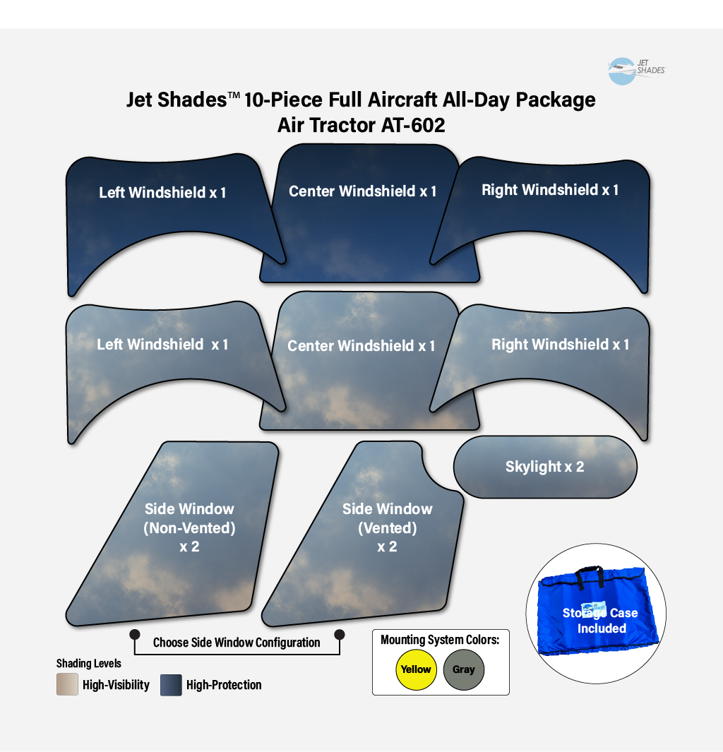 The Jet Shades All-Day Package is designed for Air Tractor operators flying long days in changing light conditions.